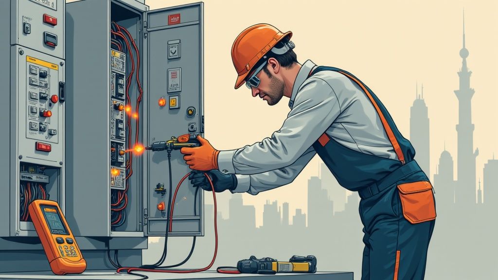 A comprehensive approach to safety extends beyond PPE. A detailed electrical risk assessment must be conducted before any hands-on work. This process identifies all potential hazards and outlines clear control measures. To see what this involves, explore our guide on how to conduct an electrical risk assessment.